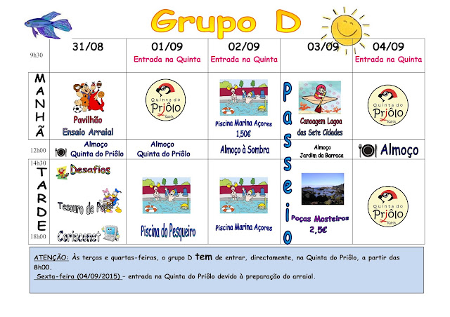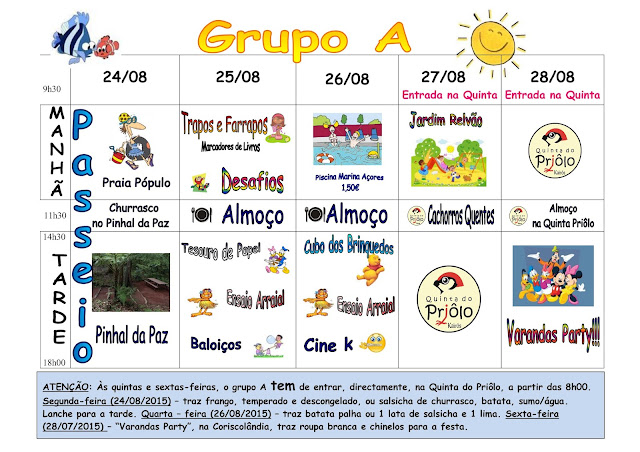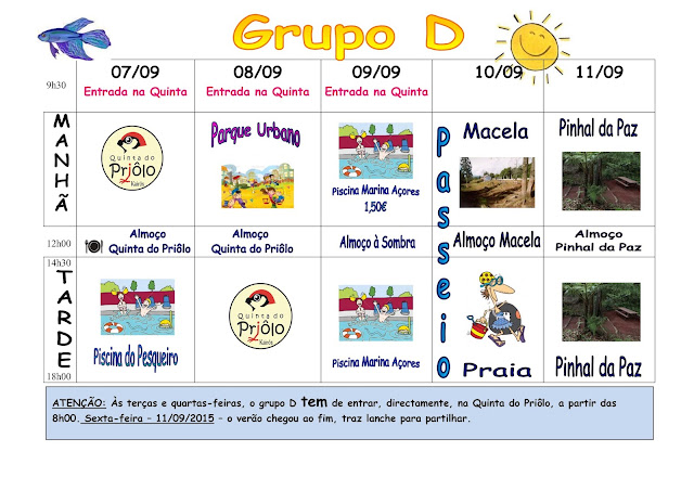 Houve uma alteração aos dias em que as Escolas vão para a Quinta do Priôlo.