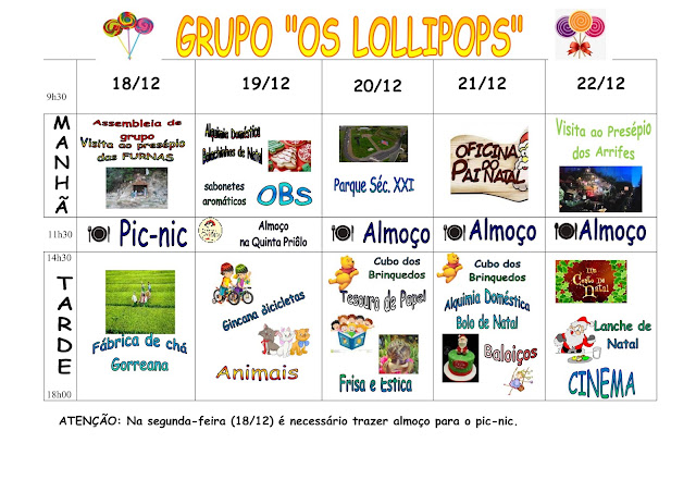 NATAL 2017: Programa de 18 a 22 de dezembro + GRUPOS